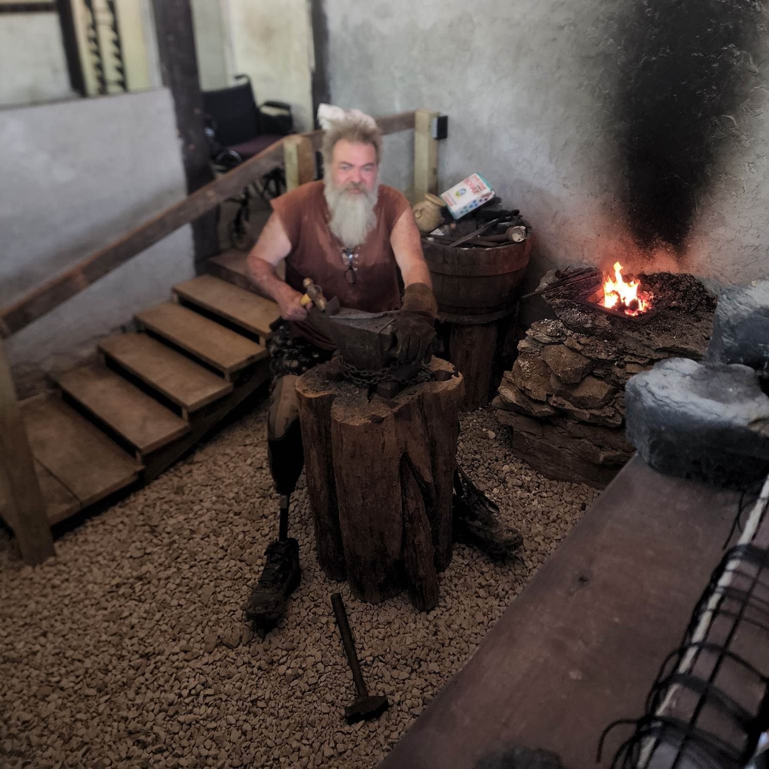 If I sell enough bobbles here, I hope to buy a vehicle with hand controls so I can travel from Ohio to my booth at the Kentucky Renaissance Festival. There, I have a 900-square-foot shop and smithy. There I can get back to forging.